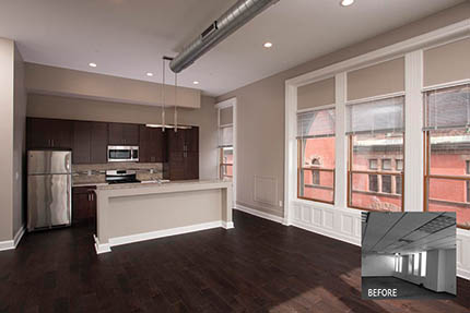 The Arcade building is located at 488 Broadway, an adaptive retrofit of a five story, mixed-use downtown building featuring 60 luxury apartments with retail space on the first floor. Contemporary accents add to the historic building and lend itself to an art deco feel adding to downtown’s atmosphere. Also located in the downtown area, 58 North Pearl is a six-story building bordered by a pedestrian walkway known as Steuben Place. The historic structure includes 29 market rate apartments above with Steuben St. Market on the first floor. The conversion uncovered hidden details and restored the exterior to its original historic condition. Modern upgrades and contemporary finishes and amenities were added to the interior.