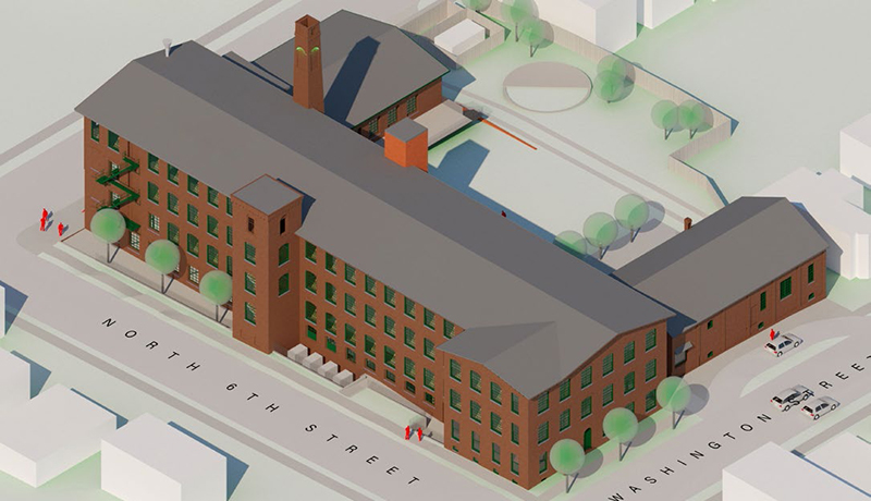 Pocketbook Hudson is brick-and-timber complex that originated as a knitting mill and was later used to make garments, pocketbooks and luggage, becoming known as “the pocketbook factory.” It had been vacant since the 1970s before it was purchased.