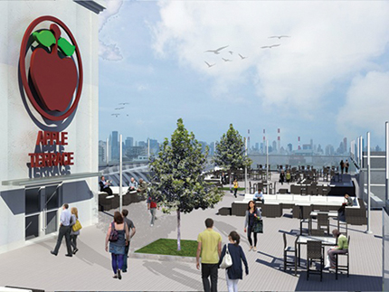 A tower topping the building has long been recognized for its iconic neon Apple Tab & Label sign and logo, yet another symbol of Long Island’s City prominent industrial past. The neighborhood around Queens Plaza was once home to many well-recognized top tier companies, including: Pepsi-Cola, Lockheed, Breyers, Eveready Flashlights, Swingline Staples, Packard and Pierce-Arrow Automobiles, Sunshine Biscuits, Dentyne Chicklets.