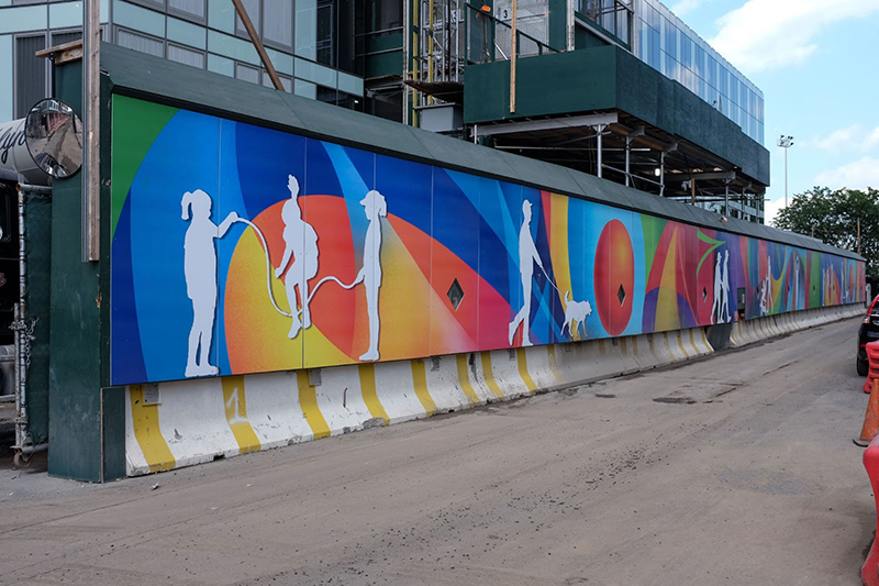 The exhibition is part of City Canvas, an initiative of the NYC Department of Cultural Affairs that transforms the city’s temporary protective structures into platforms for artwork, driven by collaboration between local artists and communities. The mural will be on display for the duration of construction, estimated to be complete in 2025.