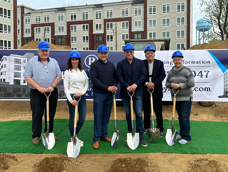 Mineola, NY Blue Communities hosted a groundbreaking of its six-story, 101,000 s/f boutique rental apartment building, The Royal Blue, located at 101 Searing Ave. Slated for completion in 2024, the 54-unit development will offer one- and two-bedroom apartments ranging in size from 875-1,435 s/f.