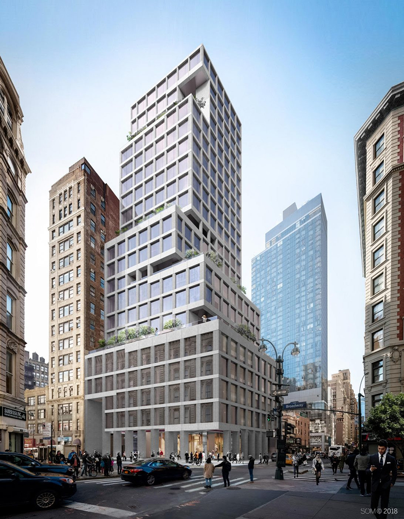 1245 Broadway is a 23-story class-A office building at the corner of 31st St. and Broadway, in NoMAD. Designed by Skidmore, Owings & Merrill, the building features architectural cast-in-place concrete, large triple-glazed windows, a private club, F&B catering to tenant floors, and panoramic views of the city. The building will be LEED-Gold certified and offers the very latest in touchless technology and air quality.