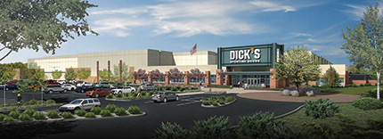 DICK’S new regional distribution facility in Broome County will be its fifth nationally. The center will be located on an 123-acre site in the Broome Corporate Park and will service over 200 retail locations throughout the Northeast. Along with construction of the facility, related site work will include wetland mitigation, grading and clearing, and extension of utilities. Additionally, DICK’S is pursuing LEED certification for the facility with plans to incorporate sustainable components such as high efficiency lighting and HVAC, recycled and environmentally-friendly construction materials, energy management systems and recycling programs for corrugate and plastics.