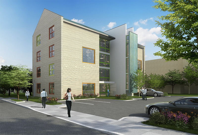 The ground-up project entailed the construction of a steel superstructure, metal joist and Structo-Crest floor framing, and steel-stud exterior framing – all finished with fiber cement lap siding and custom-colored Marvin windows, topped with a gable roof. Eastman Cooke’s responsibilities also included the installation of mechanical, electrical, plumbing, and sprinkler systems, as well as a new sewer and water lines.