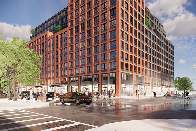 The project encompasses 365 rental units, ground-floor commercial spaces, an indoor parking garage, and two stories of residential amenities, including a fitness center, indoor spa pool, co-working areas, a movie theater, and a rooftop pool and lounge area with stunning views of the Harlem River and Randall’s Island.