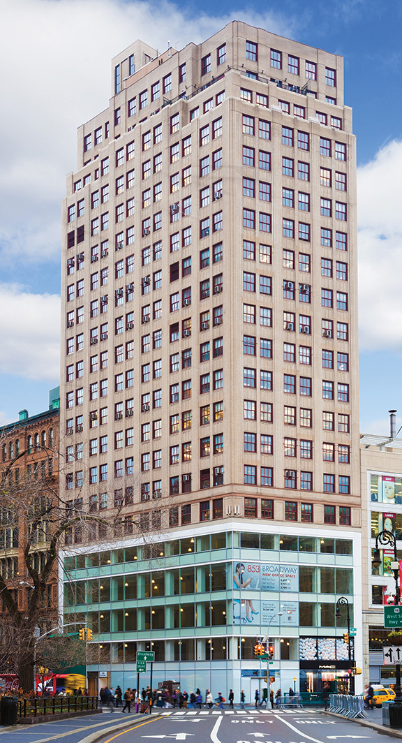 Located at the southwest corner of Broadway and 14th St., the 212,000 s/f 853 Broadway is in the heart of the rapidly growing retail district in and around Union Sq. Pedestrian traffic totals 350,000 people daily and nearly 250,000 consumers visit the nearby Union Square Greenmarket weekly. The Union Square subway station is the fourth busiest in New York City, with more than 34 million riders yearly.
