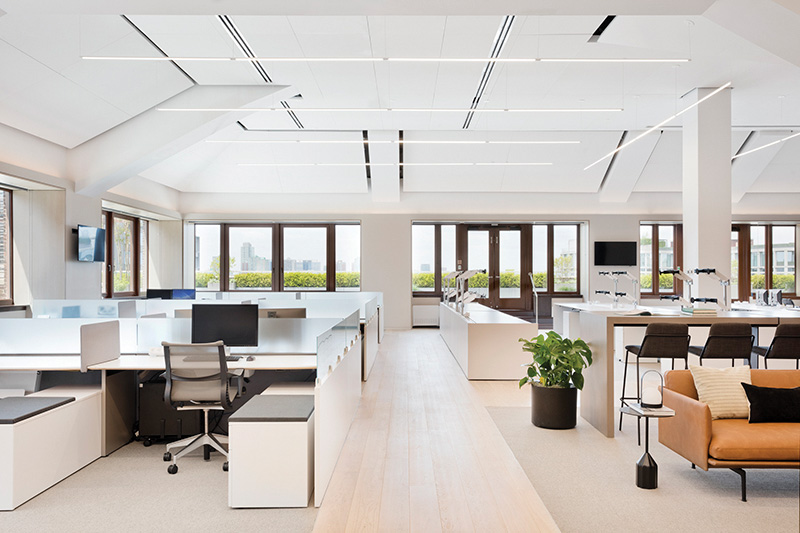 The studio took on the full scope of interior architectural services, including programming, construction administration, terrace design services, and furniture specification for the space. Now open, that office stretches nearly 16,000 rentable s/f and has a sought-after amenity in the return-to-work rush: a 5,600 s/f landscaped terrace.