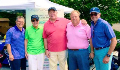 "This breaks our record for fundraising at the golf outing," said Phillips. Joe Sano, managing director, and Father Francis enjoyed the festivities as they represented St. Francis Food Pantries, which will use the funds to fight hunger and to do its good work.