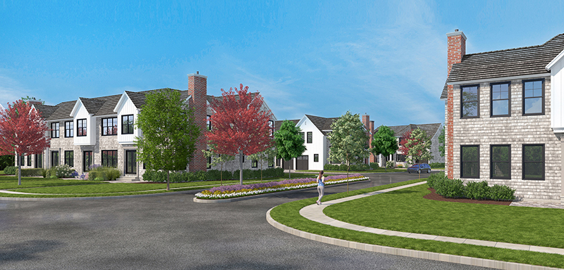 Sited on 6.4 acres, this new community with full services and amenities will include a centrally located clubhouse set amid landscaping and featuring a fitness room, locker rooms with showers, great room and a lounge with card tables, a food prep area and wet bar. Outdoors amidst a large stone patio is an oversized gunite pool and separate spa. Each two-story townhouse will range from 2,500 to 2,800 s/f providing village living.