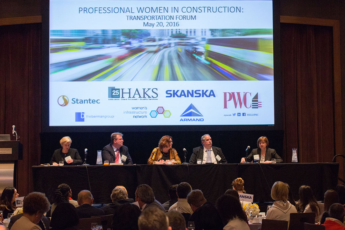 New York, NY On May 20th, Professional Women in Construction’s (PWC) Transportation Forum at Grand Hyatt at Grand Central offered a panel discussion on delivery methods, with panelists representing public private partnerships, design build and CM at risk. Following the panel was a presentation about the LaGuardia Redevelopment by the Port Authority.