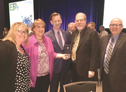 Representatives from SWBR Architects and St. John’s pose after receiving the Award of Merit at the Environments for Aging Design Showcase. Shown (from left) are; Jodi Mason, Joanne Braeunle, Thomas Gears, Duncan Walker and Paul Bartlett.Rochester, NY Representatives from SWBR Architects and St. John’s received the Award of Merit at the Environments for Aging Design Showcase in Austin, Tex., earlier this month. The award recognizes Brickstone by St. John’s as a unique and innovative project that is distinctly different from traditional senior living communities.