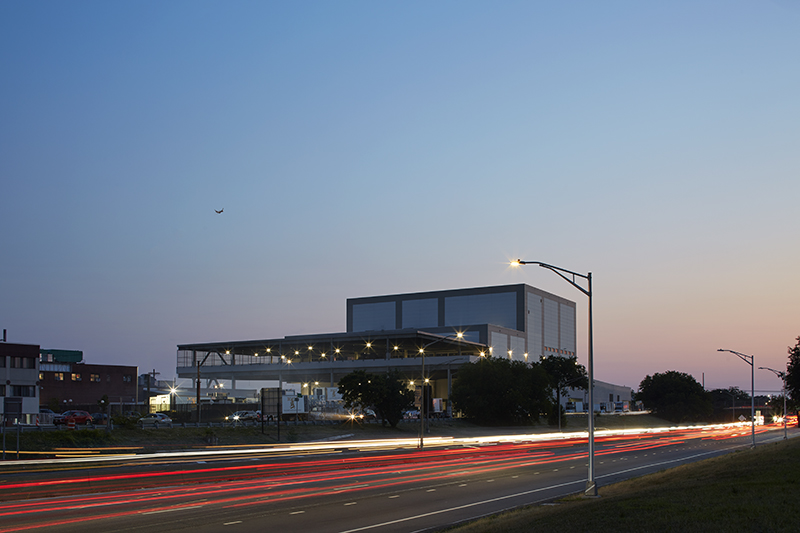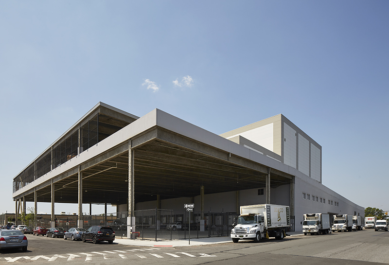 Terminal Logistics Center is located in a dense urban area, a rarity for facilities of this size and nature. Due to its location, Triangle Equities approached the development of the facility with innovative tactics, prioritizing the needs of the local community. To capitalize on the building’s relatively small footprint, Triangle Equities worked with architecture firms NELSON and GF55 Architects to design Terminal Logistics Center as one of the first multistory industrial buildings in the United States at the time of its planning, building upward rather than outward. The project team developed a ramp connecting the first and second floors of the building, large enough for 53-foot trucks to navigate its 28 loading docks. Additionally, Triangle Equities liaised with Queens Community Board 10 and local representatives from nearby PS 124 Osmond A. Church to alleviate traffic on frequently used residential roads, mitigating noise pollution for local residents.