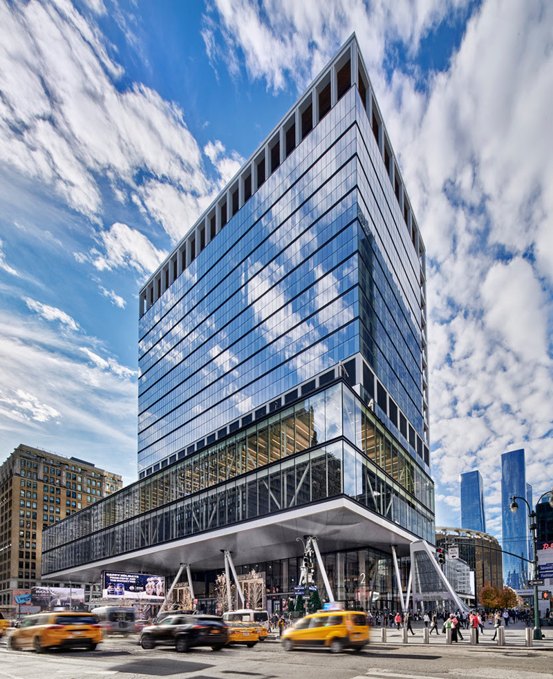 As part of its recently completed $750 million redevelopment of PENN 2, Vornado installed a highly efficient modern glass curtain wall; a triple-height lobby; 16 double-height outdoor tenant loggias; and The Bustle. PENN 2 will incorporate 30,000 s/f of retail, including the Dynamo Room, a 7,100 s/f full-service restaurant and bar from Sunday Hospitality. The building also features 72,000 s/f of outdoor green spaces; The Perch, a rooftop glass pavilion and event space that opens onto a landscaped 17,000 s/f private green space available to all tenants; and a 280-seat Town Hall suspended above Plaza33. PENN 2 is also the headquarters location for Madison Square Garden and Major League Soccer.