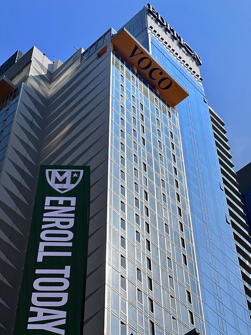 The VOCO Hotel floors 3 through 32 used 31,466 s/f of Crystal window wall with 392 operable casement window panels. The unitized, pre-glazed W50i window wall system easily spans floor slab to floor slab openings up to 10 feet in height. The system framing features minimal 2-½” sightlines and a 5” frame depth, with a polyamide insulating thermal break. The system is structurally rated at AW-PG70 and AW-PG55. Installation of the Crystal system is speeded by integrated snap-in panels, and EPM triple-gasketed male/female joints assure a durable, waterproof seal.