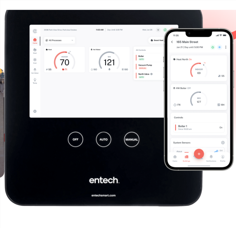 Entech doesn't manufacture boilers. Instead, they've mastered something more valuable: making your existing boilers intelligent. Whether you're operating 40-year-old steam systems or 15-year-old hydronic boilers, Entech's smart boiler controls breathe new life into aging equipment.