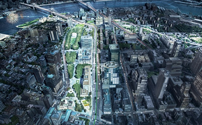 Brooklyn, NY A plan to reconnect nearly 50 acres of public space between Downtown Brooklyn and the Brooklyn Bridge, created by the visionary firm WXY, has been unveiled by a coalition of community groups.