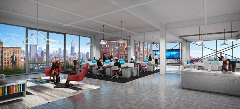 The lifestyle-oriented office building offers floor-to-ceiling glass, a sleek modern image, and six ample terraces totaling 8,000 s/f of outdoor space.
