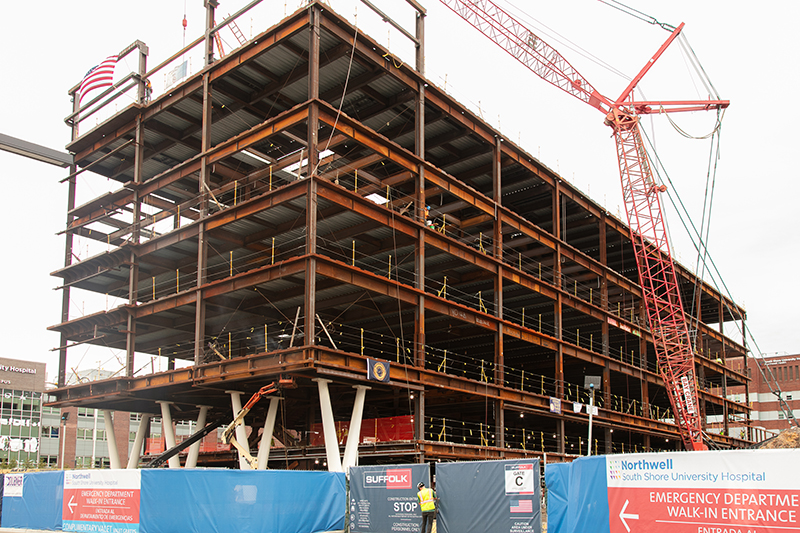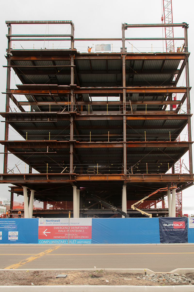 Garden City, NY Northwell Health’s South Shore University Hospital Expansion is a six-story, out-of-ground expansion of Northwell Health’s eastern region flagship hospital. The first phase of the project includes core and shell construction, foundations, steel superstructure, façade, back of house spaces, vertical transportation, fire protection, main mechanical, electrical, plumbing equipment and distribution.