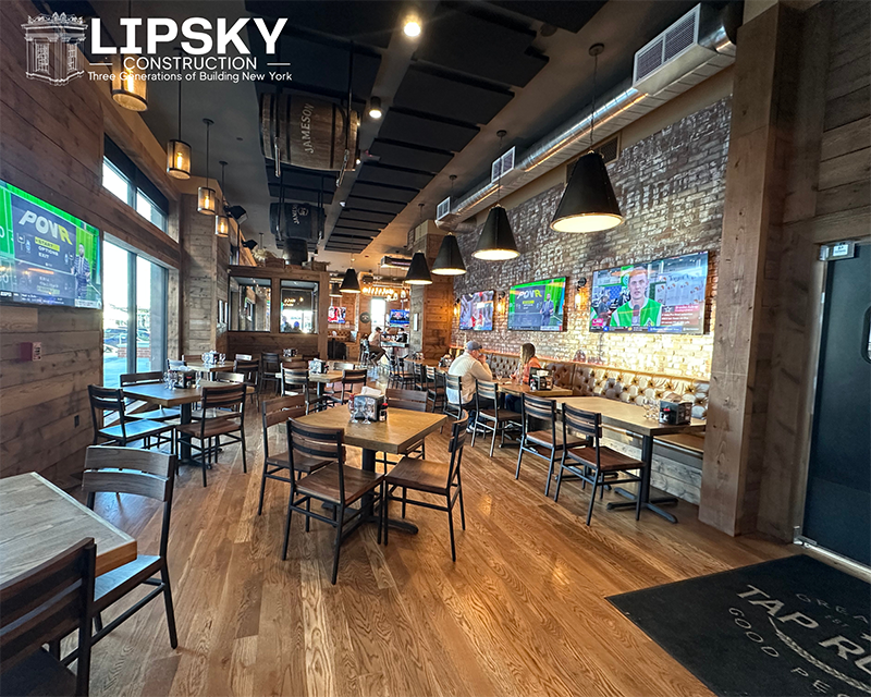 As the construction manager of three Tap Rooms - including Tap Room Garden City, Tap Room Ronkonkoma, and the upcoming Tap Room Bayside which is Upstream Hospitality’s first NYC venture - Lipsky Construction Management has played an integral role in the brand’s expansion. From the conceptual real estate transaction phase, thru the design and engineering phase, and of course the manager of the construction process which Lipsky built its legacy on. From the initial real estate transaction to design development and engineering, and finally, overseeing the construction process, Lipsky has ensured that each Tap Room location embodies the signature warmth and welcoming atmosphere that guests have come to expect.