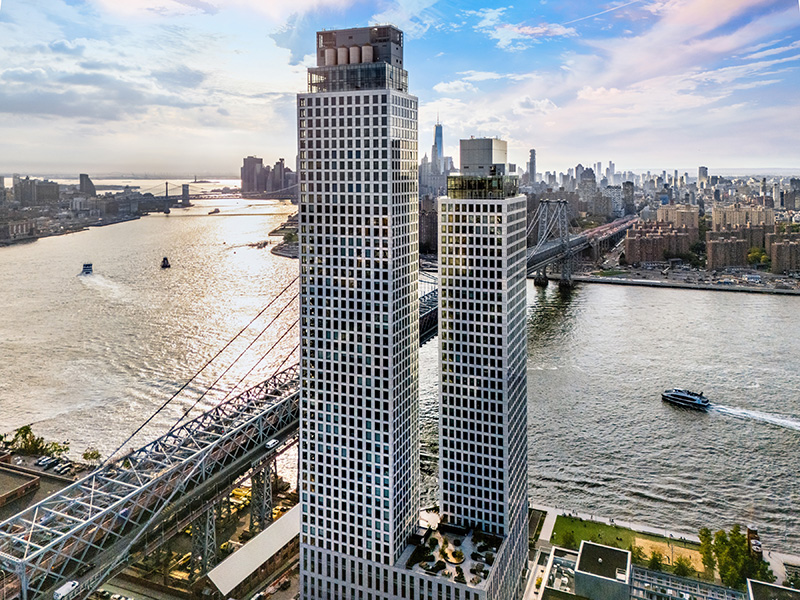 Brooklyn, NY Designed inside and out by renowned architect Annabelle Selldorf of Selldorf Architects, the pearlescent building features an iridescent porcelain façade that reflects the waterfront and natural light throughout the day, creating a dynamic, ever-changing presence on the New York City skyline. Inside, thoughtful open-plan interiors come to life with high-quality finishes, modern conveniences, and exceptional craftsmanship. Kitchens boast Caesarstone countertops, high-end Bosch appliances, and in most homes, spacious islands with a breakfast bar. Ceiling heights reach 11 ft., while expansive windows frame picturesque views of the Manhattan skyline and waterfront, with select homes offering panoramic vistas of all five New York City boroughs. The homes are the tallest in Williamsburg and on the Brooklyn Waterfront.