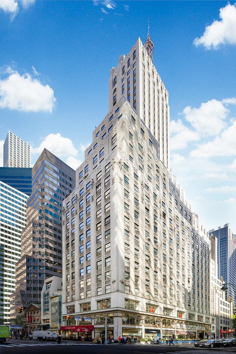 Built in 1932 and known as the DuMont Building, 515 Madison is a 42-story, 370,000 s/f class A building designed by John Carpenter. One of the building’s most distinctive features is a broadcasting antenna that traces back to the building’s role in the first television broadcasts of Allen DuMont’s experimental television station W2XWV in 1938. This building’s restoration of its renovated entrance and lobby in 2009 kept its architectural elements intact yet modernized for today’s tenants.
