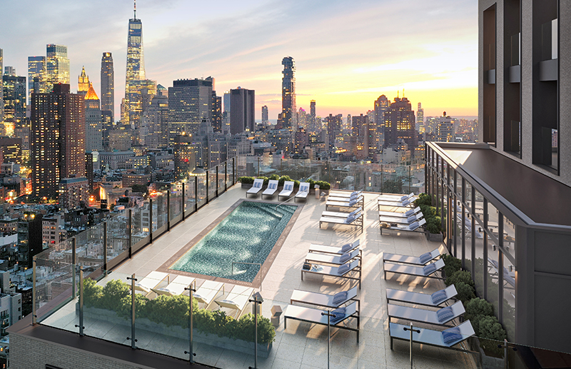 The Suffolk’s indoor and outdoor amenity spaces are designed to reflect the culture and ethos of the Lower East Side neighborhood, a historic hub for artists and professionals. Residents will enjoy a rooftop pool and sundeck, an outdoor terrace with lounge seating, fire pits and barbeques; a full-floor amenity suite with co-working spaces and conference rooms, a dedicated resident lounge and chef’s kitchen; and a fitness club and yoga studio to foster healthy living and community engagement among residents.
