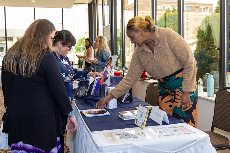 This year’s conference started off with our Ice Breaker Speaker, Veronica McFall, the Associate Director of Alumni Relations for Affinity and Identity Programs at Colgate University and children’s author. Veronica spoke on female empowerment and creating a seat at the table when one was not readily available to her, citing the creation of her own publishing company Knowledge is Capital when other companies turned her children’s book, A Visit to The Bahamas from A to Z, away. The day continued with a dozen powerful breakout sessions led by local female leaders and the opportunity to visit the business expo highlighting local businesses owned by and catered to women. Breakout session topics ranged from “Women and the Art of Risk” and “How to Spark Innovation” to “Managing Obstacles and Overcoming Adversity” and “Reducing Burnout”. Additionally, new this year, an entire track of sessions was dedicated to self-care and featured sessions on Sound Healing, Meditation, and Journaling, all sessions thoroughly enjoyed by attendees.
