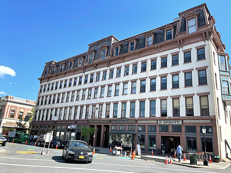 The five-story, 55,000 s/f Cannon Building was built in 1835 and is located on the Broadway side of the city’s triangular Monument Sq. in the Central Troy Historic District. The district is listed on the National Register of Historic Places.