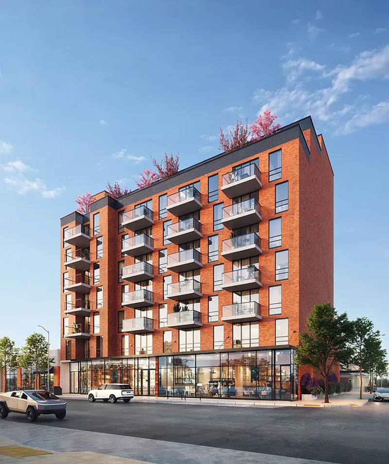 Completed in March, the site’s 54 units consist of 49 apartments, four retail units and a community facility unit. The 49 residential units include 35 one-bedroom/one-bath units, 12 two-bedroom/two-bath units, and two penthouse units that each have two bedrooms and two bathrooms.