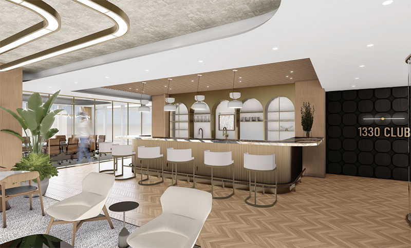 Ownership’s capital improvements will feature an impressive suite of amenities called Club 1330, which will consist of shared conference facilities, a sophisticated tenant lounge, a large café, golf simulator and dedicated wellness room set to be complete this month.