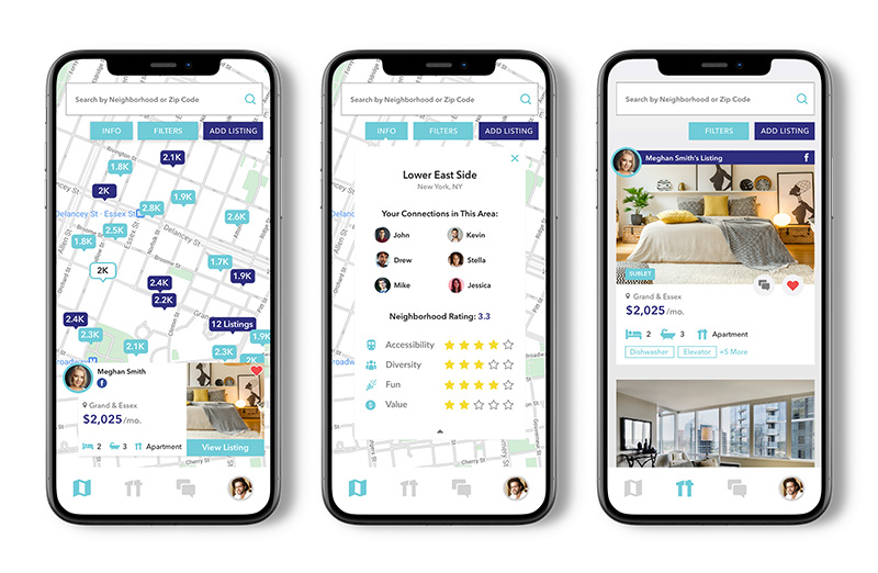 Lettey simplifies the rental process by applying social proof to the decision-making process, empowering users to make better decisions based on direct feedback from their friends and family while optimizing their search. After connecting their Facebook and/or contacts to the platform, users can see which neighborhoods their connections live in via an intuitive, filterable map; search thousands of listings across the city; review their peers’ ratings; and then pick an apartment based on their preferences. Lettey is one of the first platforms to apply social proof and peer-to-peer feedback as tools to the home search process.