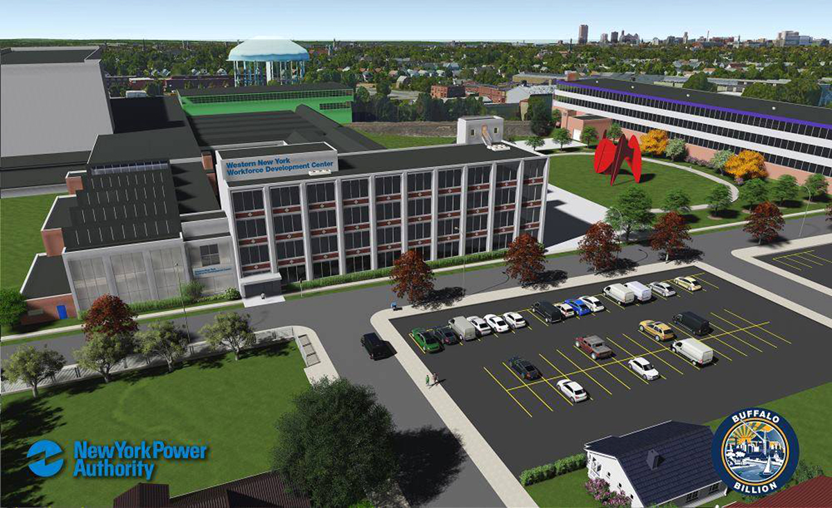 New York State Empire State Development (NYSESD) and the New York Power Authority (NYPA) will be investing over $44 million, as part of governor Cuomo’s “Buffalo Billion,” for the initial phases of this neighborhood revitalization project. More than 750,000 s/f of dormant industrial buildings, on over 50 acres, were acquired by the BUDC to host a training and entrepreneurial center for the region. The first major tenant is expected to be the Workforce Training Center in 100,000 s/f of the building at 683 Northland Ave. The training center will prepare area residents to work in advanced manufacturing and energy product manufacturing.