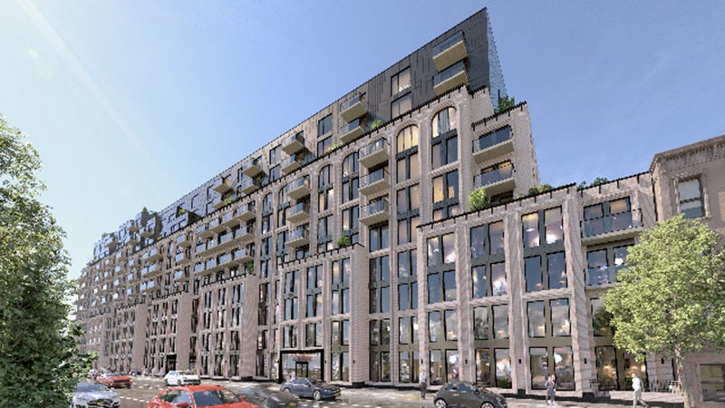 Goose Property Management will utilize the funds for the 302,000 s/f, four-building development that encompasses three 11-story buildings and one 12-story building in addition to 9,700 s/f of commercial space and 40 parking spaces. Once completed, the development will have 367 rental units ranging from studios to two-bedroom apartments.