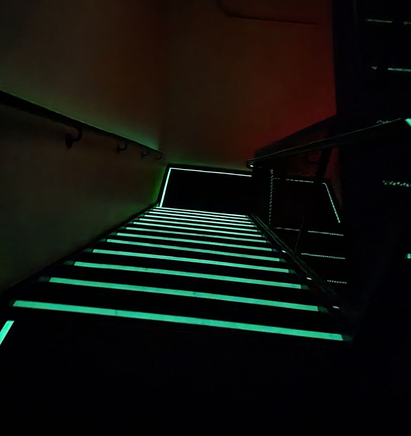 The stakes could not be higher. Consider some of the city’s tallest residential towers: the 1,428-ft. Steinway Tower on West 57th St., the 1,388-ft. 432 Park Ave., and the 778-ft. Skyline Tower in Queens. New York City is home to over 6,400 high-rise buildings, most of which house permanent residents, including families and elderly tenants. During emergencies, these groups are less likely to evacuate efficiently, as panic can overwhelm even the most capable individuals. Photoluminescent glow-in-the-dark markings provide a clear, visible path to safety, even in complete darkness.