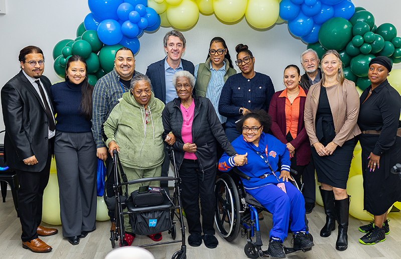 Lighting fixtures were upgraded to be energy-efficient LED models, with light dimmer switches. The community room has been renovated and enhanced to include a new community kitchen, wellness room, nurse’s station, and resident services coordinator office. Through a partnership with Jericho Project, residents will benefit from social services and meaningful programming tied to the Jericho CARES initiative (Community, Advocacy, Resources, and Employment Services). Additional improvements will include renovated outdoor balconies with new benches and flowers, modernized elevators, and free building-wide internet which is currently available for all residents.